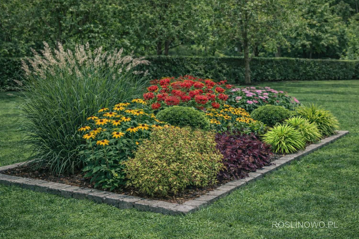 UWAGA!. W przypadku braku któregokolwiek gatunku w trakcie trwania sezonu, indywidualnie dobieramy odmiany lub gatunki o podobnych właściwościach i zbliżonym wyglądzie - zamiana nie zaburzy efektu końcowego projektu rabaty a może ją dodatkowo uatrakcyjnić.