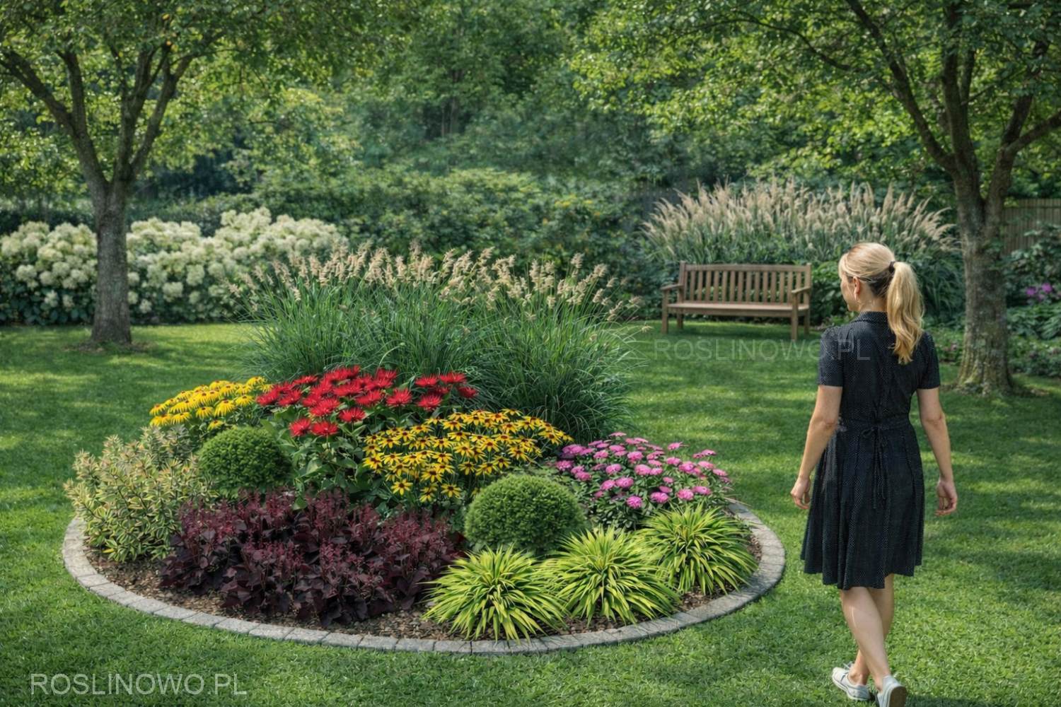 Starannie dobrane gatunki roślin zapewnią, iż zarówno w okresie wiosennym jak i letnio-jesiennym kompozycja bujnie i harmonijnie ozdobi przydomowy ogródek.