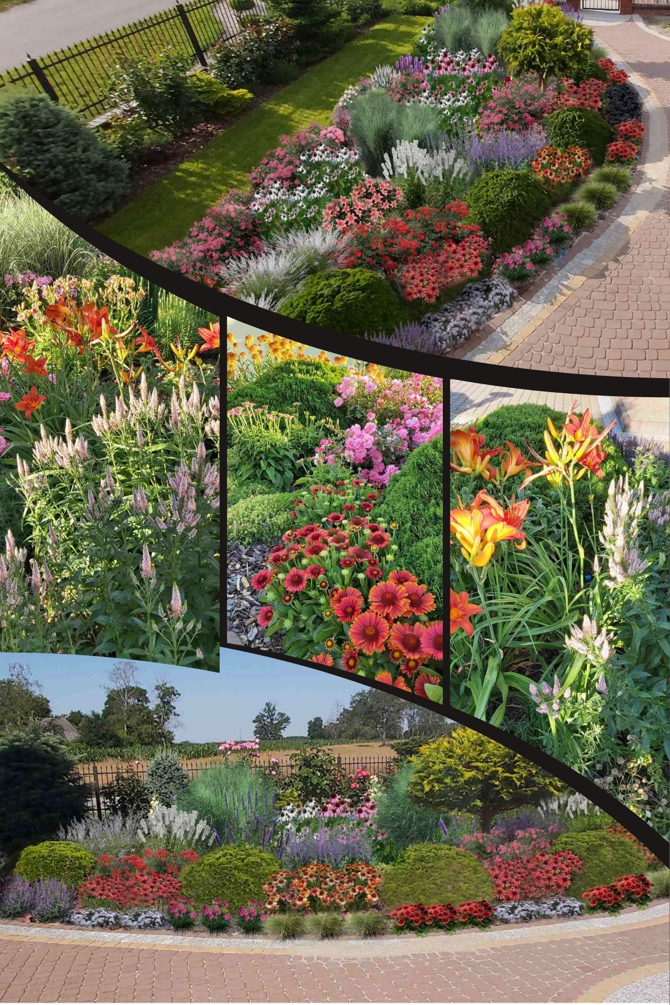 Realizacja z 2024 roku -gotowego projektu rabaty - "Pastelowa elegancja maxi" - zestaw (Projekt + 65 sadzonek roślin)